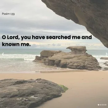 Psalm 139 O Lord, you have searched me and known me. O Lord, you have searched me and known me. You know when I sit down and when I rise up; you discern my thoughts from far away....Continue reading→