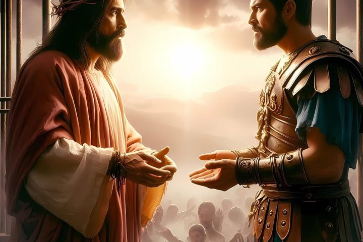 Truth Jesus before Pilate Then Pilate entered the praetorium again, summoned Jesus, and asked him, ‘Are you the King of the Jews?’ Jesus answered, ‘Do...